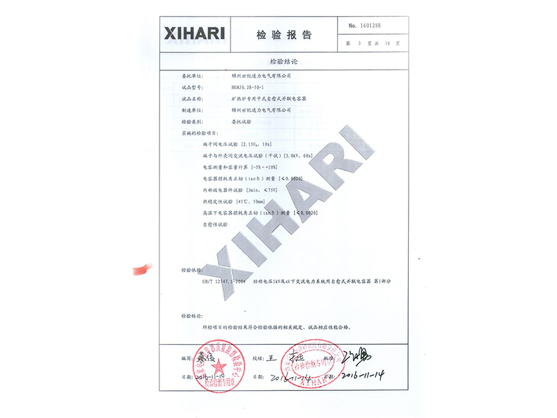 報(bào)告 礦熱爐專用干式自愈式電容器型式試驗(yàn)報(bào)告